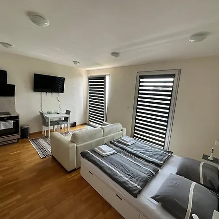 El apartamento cuenta con una cocina completa que tiene instalaciones como un hervidor eléctrico, nevera y un horno. Para una estancia cómoda y relajante en este alojamiento, los huéspedes pueden disfrutar de servicio de tetera/cafetera. El restaurante Andelska Kridla sirve comida europea y se encuentra a alrededor de 5 minutos a pie. La parada de autobús Slovinska se encuentra extremadamente cerca de este alojamiento.